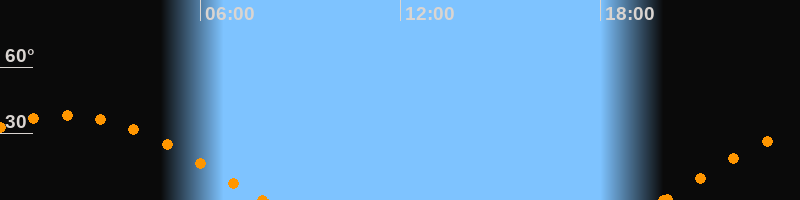 Höchster Stand (Kulmination)01:55 Uhr (h = 38.1°)