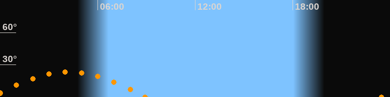 Höchster Stand (Kulmination)04:13 Uhr (h = 23.5°)