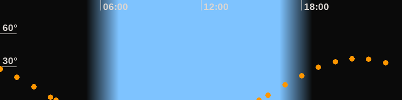 Höchster Stand (Kulmination)21:22 Uhr (h = 37.6°)