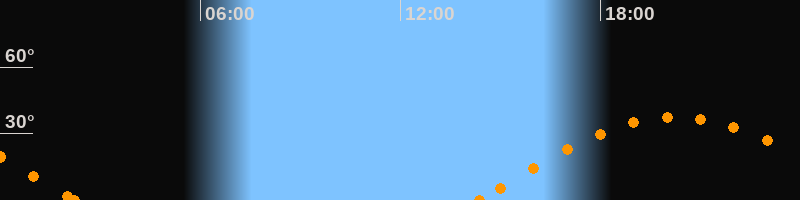 Höchster Stand (Kulmination)20:16 Uhr (h = 37.4°)