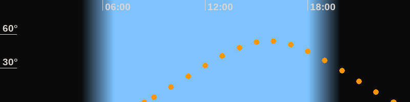 Höchster Stand (Kulmination)15:44 Uhr (h = 54.1°)