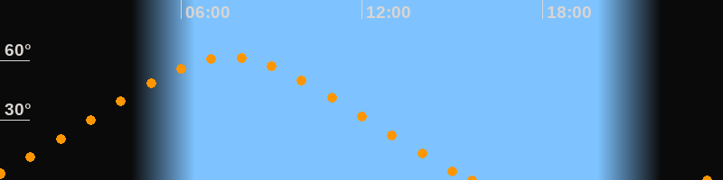 Höchster Stand (Kulmination)07:35 Uhr (h = 61.6°)