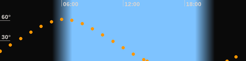 Höchster Stand (Kulmination)06:16 Uhr (h = 61.7°)