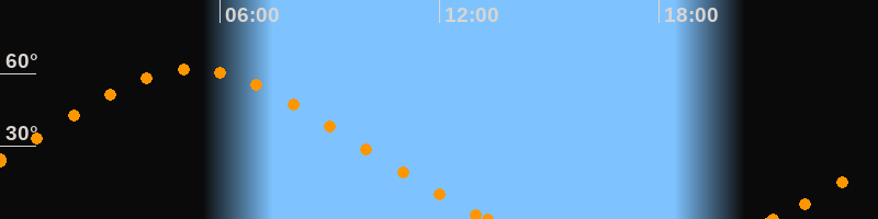 Höchster Stand (Kulmination)05:15 Uhr (h = 61.7°)