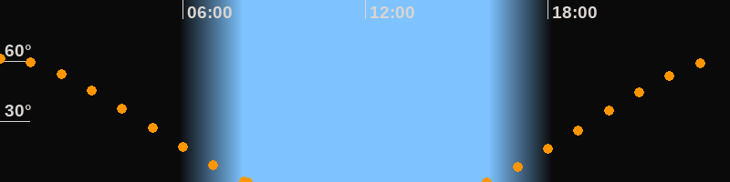 Höchster Stand (Kulmination)00:01 Uhr (h = 61.3°)