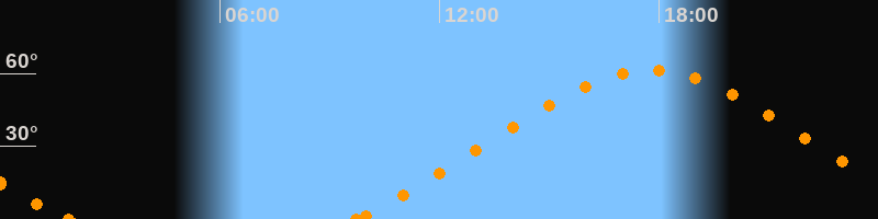 Höchster Stand (Kulmination)17:46 Uhr (h = 61.3°)