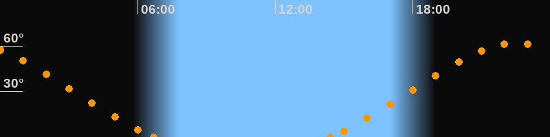 Höchster Stand (Kulmination)22:30 Uhr (h = 62°)