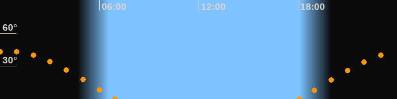 Höchster Stand (Kulmination)00:29 Uhr (h = 43.5°)