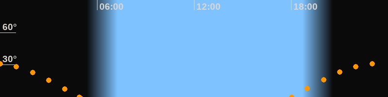 Höchster Stand (Kulmination)23:26 Uhr (h = 31.3°)