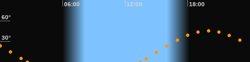 Höchster Stand (Kulmination)19:59 Uhr (h = 45.5°)
