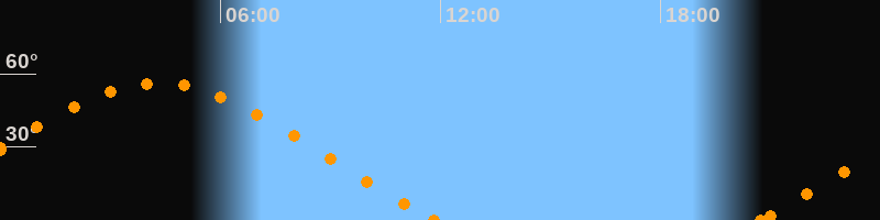 Höchster Stand (Kulmination)04:18 Uhr (h = 56.2°)