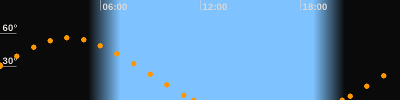 Aufgang20:32 Uhr im Nordosten (αAz = 61.9°)