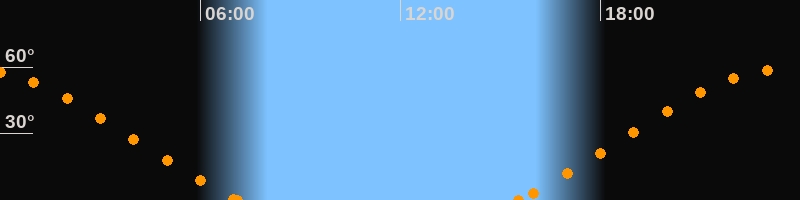 Höchster Stand (Kulmination)23:17 Uhr (h = 58.6°)
