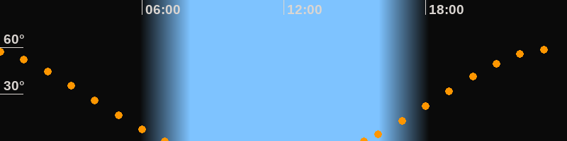 Höchster Stand (Kulmination)23:09 Uhr (h = 58.6°)
