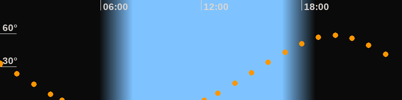 Höchster Stand (Kulmination)19:54 Uhr (h = 58.3°)