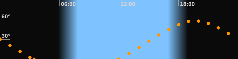 Höchster Stand (Kulmination)19:38 Uhr (h = 58.3°)
