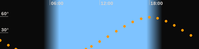 Höchster Stand (Kulmination)18:05 Uhr (h = 58.5°)