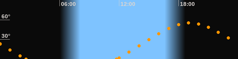 Höchster Stand (Kulmination)19:08 Uhr (h = 55.2°)