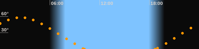 Höchster Stand (Kulmination)02:29 Uhr (h = 58.3°)