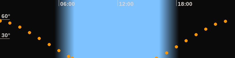 Höchster Stand (Kulmination)23:38 Uhr (h = 58°)