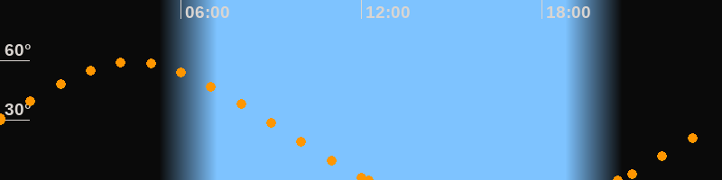 Höchster Stand (Kulmination)04:25 Uhr (h = 59.4°)