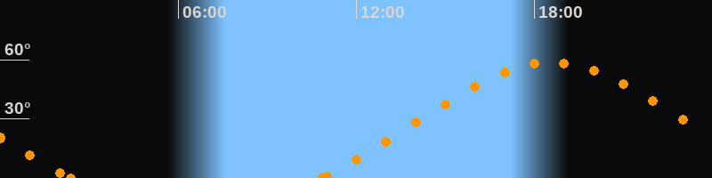 Höchster Stand (Kulmination)18:35 Uhr (h = 58.7°)