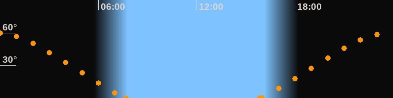 Höchster Stand (Kulmination)23:44 Uhr (h = 60°)