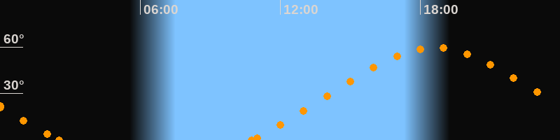 Höchster Stand (Kulmination)18:37 Uhr (h = 59.6°)