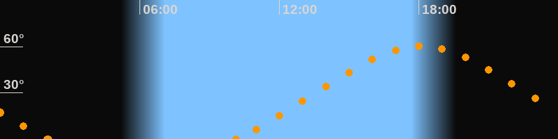 Höchster Stand (Kulmination)18:05 Uhr (h = 60.5°)