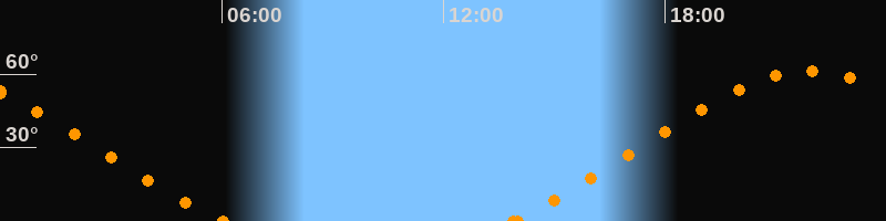 Höchster Stand (Kulmination)21:55 Uhr (h = 61.3°)