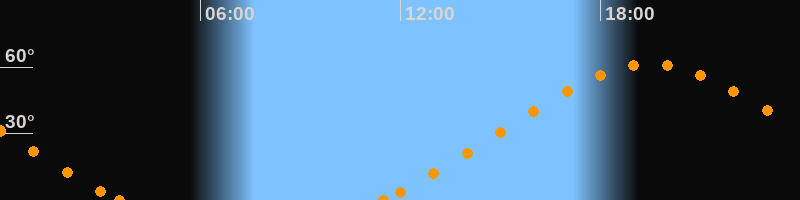 Höchster Stand (Kulmination)19:30 Uhr (h = 61.2°)