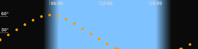 Höchster Stand (Kulmination)06:05 Uhr (h = 62.6°)