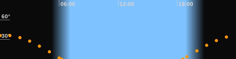 Höchster Stand (Kulmination)00:23 Uhr (h = 36.4°)