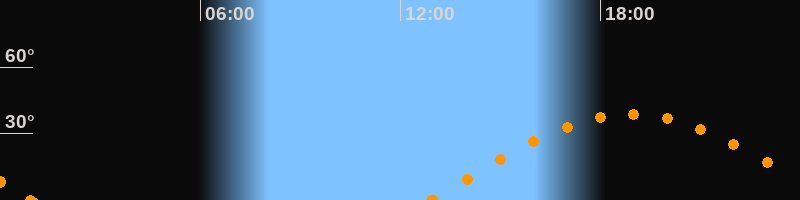 Höchster Stand (Kulmination)18:55 Uhr (h = 38.6°)