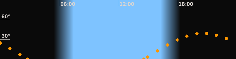 Höchster Stand (Kulmination)20:39 Uhr (h = 39.5°)
