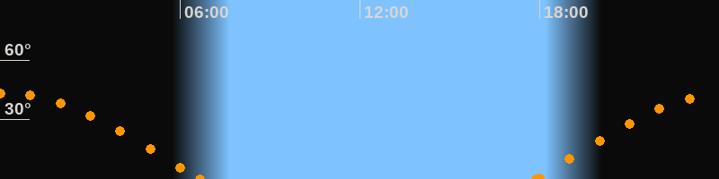Höchster Stand (Kulmination)00:13 Uhr (h = 43.2°)