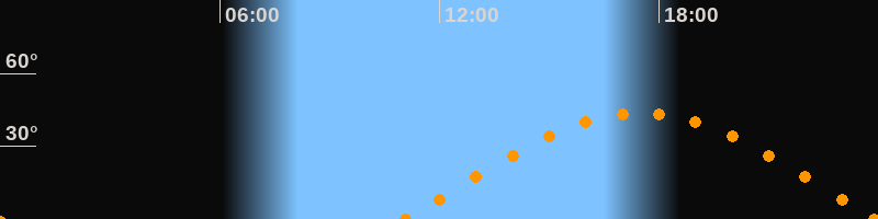 Höchster Stand (Kulmination)17:29 Uhr (h = 43.7°)